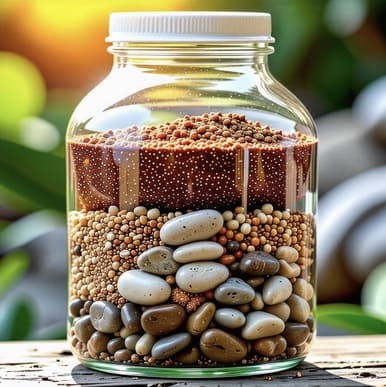 - 병에 담기: 가장 큰 입자인 자갈부터 병에 담습니다. 숟가락이나 깔때기를 사용하면 흘리지 않고 깔끔하게 담을 수 있습니다.